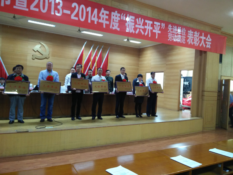 4月27日,开平区委、区政府召开开平区庆祝“五一”国际劳动节暨2013—2014年度“振兴开平”先进单位、劳动模范表彰大会,授予平博官方在线入口 “振兴开平”先进单位荣誉称号,授予公司总经理温朝江、生产部副部长刘春雷开平区劳动模范荣誉称号,并对先进单位和劳动模范予以隆重表彰。(安环部 鲁教林)