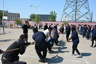 26号下午,拔河比赛8个代表队,不仅是力量上的较量,更是团队协作的集中表现。伴随着裁判的一声令下,比赛正式开始了,两队队员立即投入到紧张而又激烈的比赛之中。选手们个个咬紧牙关,手紧握绳子,脚加足马力,身体往后倾,像一只只虎虎生威的猛虎一样,每个人都把自己的力气使在那根长长的绳子上,一心为自己团队的荣誉拼搏。场外观众都成了他们的拉拉队,使出浑身解数为场上选手加油助威。