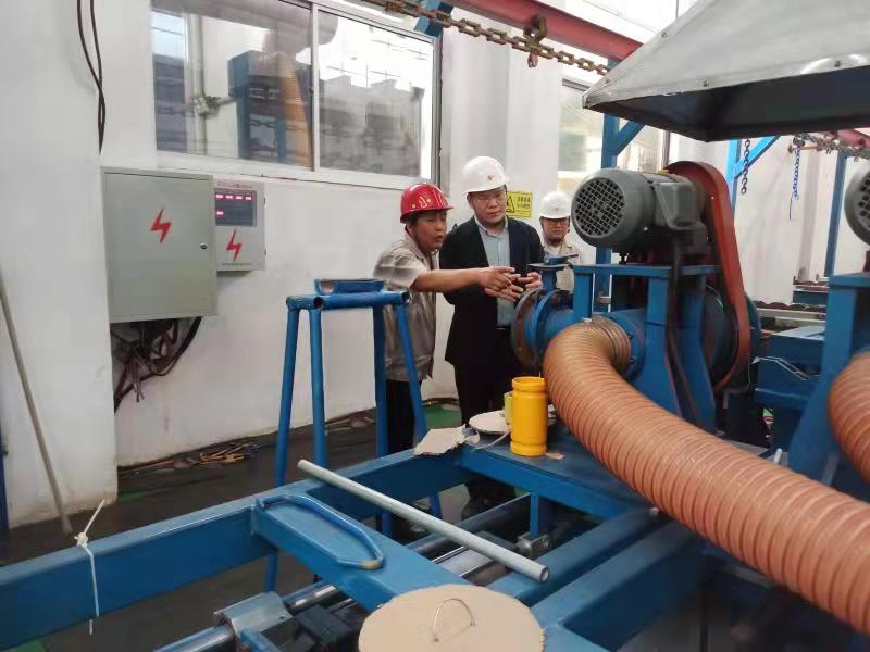 张区长一行来到3PE钢管防腐项目现场,新的生产线正在调试,初步具备生产能力。总经理温朝江向张区长介绍了新项目进展情况、防腐钢管生产工艺技术。张区长认真听取了公司近期生产经营、项目建设、环保交通等的情况汇报,对公司近期经营等情况进行详细询问,并提出了指导意见。