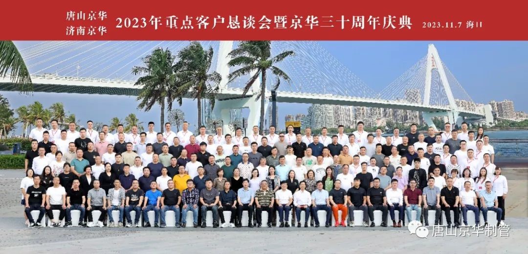 11月6日,唐山京华、济南京华2023年全国重点客户恳谈会暨京华成立三十周年庆典在海南隆重召开。来自全国各地的150家上下游合作伙伴应邀参加了会议。唐山京华、济南京华总经理温朝江,供销副总胡武、生产副总廖灿军、行政副总郑茂明,济南京华常务副总励冠宇、生产副总杜成友及部分销售骨干、驻外业务经理等30余人参会。