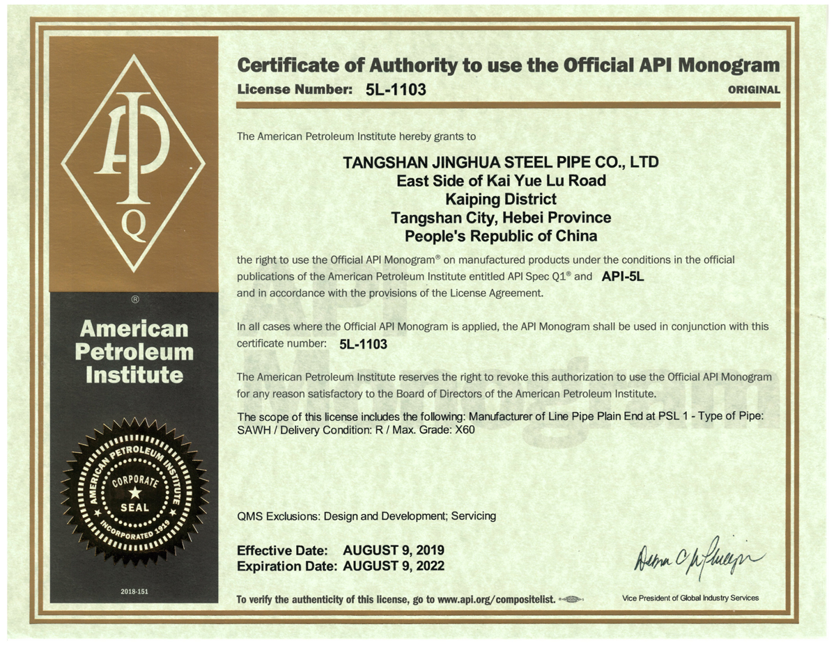 WELCOME TO Tangshan Jinghua Steel Pipe Co.,Ltd.